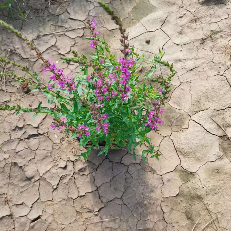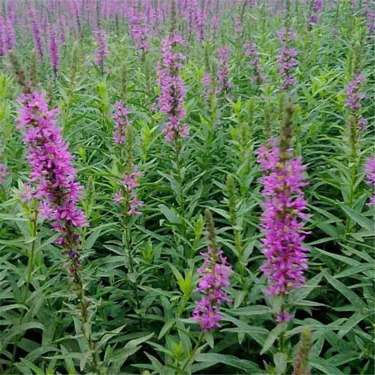 千屈菜又叫水枝柳、水柳、對(duì)葉蓮等,多年水生宿根草本植物,植株高約1米,直立生長(zhǎng),主桿上有許多分枝,葉子對(duì)生,披針形。葉子長(zhǎng)4~6cm,寬1cm左右。總狀花絮長(zhǎng)在最上面,長(zhǎng)約30cm,花朵簇生。喜歡溫暖濕潤(rùn)陽(yáng)光充足的環(huán)境,在我國(guó)南方和北方地區(qū)都有野生的,生長(zhǎng)在沼澤、湖畔、池塘等淺水地區(qū)。它耐寒性強(qiáng),在山東、河南、北京等地均可自然越冬,霜降以后地面部分枯死,地下部分進(jìn)入泥土休眠,在淺水的河邊和低洼潮濕的地方生長(zhǎng)態(tài)勢(shì)最好,對(duì)土壤的要求不嚴(yán)。千屈菜的生命力極強(qiáng),管理也可粗放,栽培的環(huán)境只要保證光照充足、通風(fēng)良好即可,在生長(zhǎng)期要經(jīng)常打頂促使其矮化分蘗,長(zhǎng)出豐滿茂密的株型。